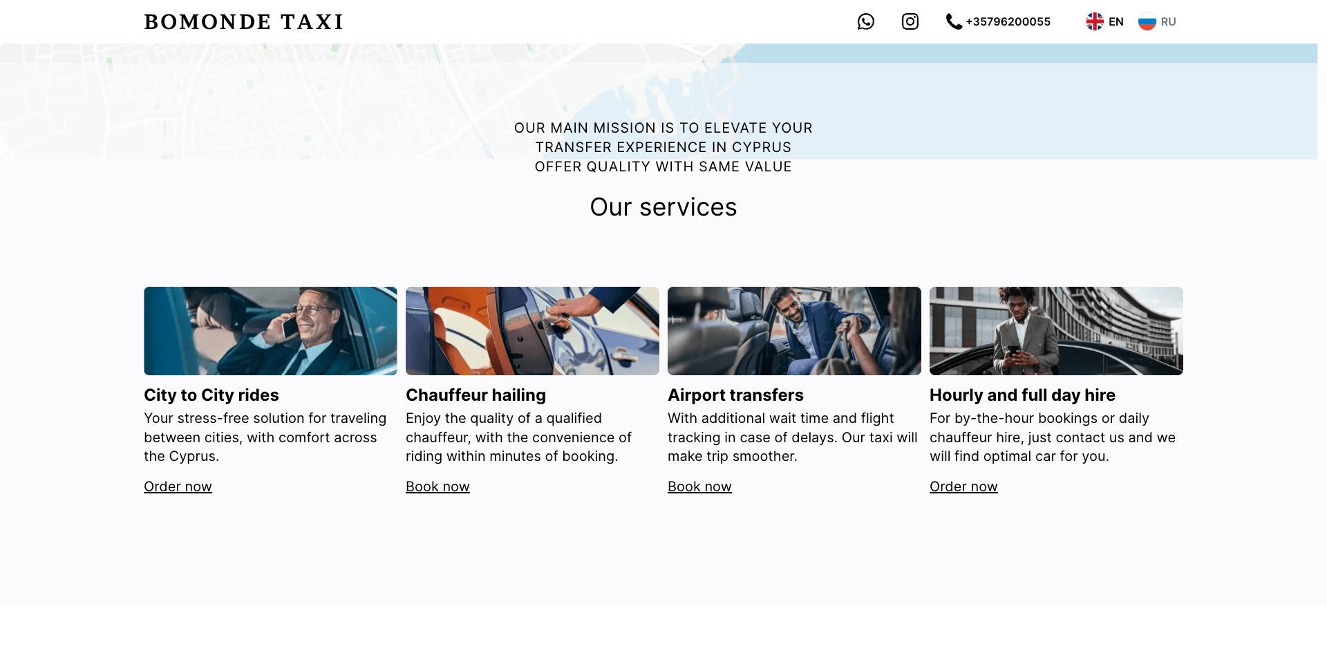 Our partner Bomonde Taxi, a premium taxi brand, approached us to optimise the process of processing and receiving orders, as well as to redesign their corporate design. This company transports celebrities in Cyprus as well as organises private tours and excursions. Therefore, our partner needed a Telegram bot for taxi ordering, integrated into a single system with the dispatch service, to maintain high-quality service. The functionality of this bot is quite broad, because it not only collects orders, but also uploads the generated trip data into special tables. The data collected by the bot is then used to coordinate the activities of the dispatch service in organising the transfer and interacting with the client.
