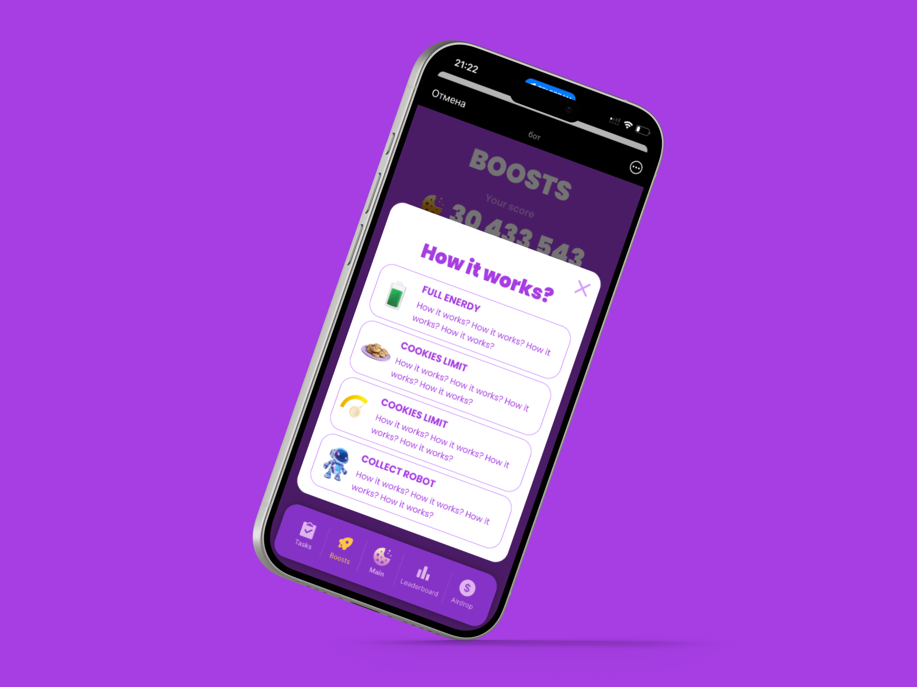 Cookie Bot is mini-app a "Tap game" in Telegram. Made for Solana project airdrop and improvement user engagment. https://t.me/CookiesBand_bot